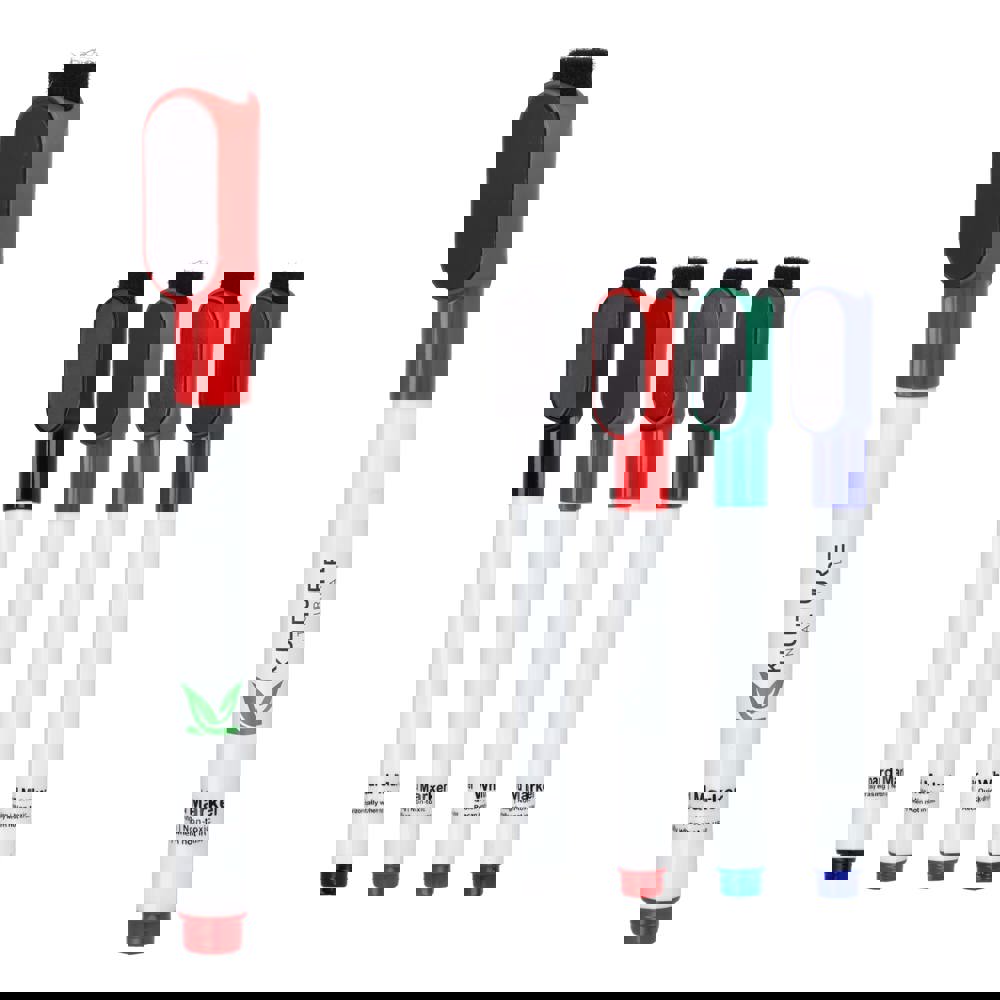Dry erasable whiteboard marker with magnet and wiper. Available in different writing colours. more