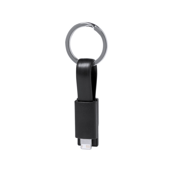 USB keychain charger in a wide range of bright tones. With dual micro USB/lightning connection. Presented in an individual bag.