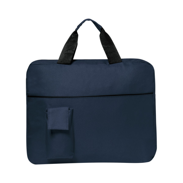 Document bag with zipper closure in soft 600D polyester finish with bright tones. With reinforced carrying handles in matching color and front pocket for smartphone with velcro closure.