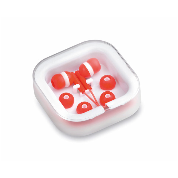 Handy and comfortable earphones with a casual two-tone design, 3.5mm jack connection and matching color cable. Available in a wide range of colours. Presented in an elegant design case with spare ear pads.
