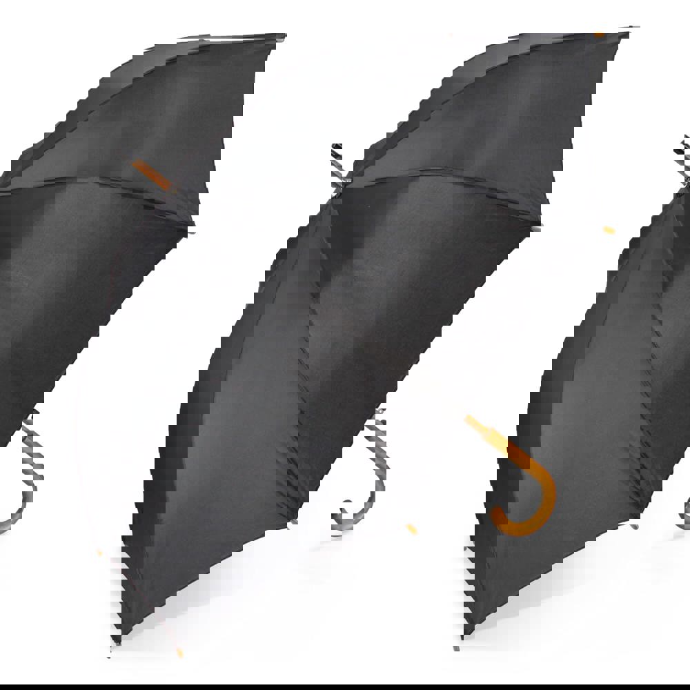 This 23" stick umbrella features a wooden hook handle and a sturdy wooden shaft with a fibreglass frame, designed to handle heavy rain. It has an auto open function and manual close, with a durable 190T polyester canopy that ensures reliable performance.