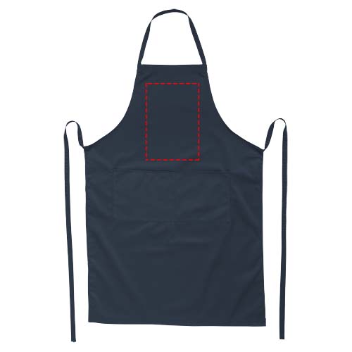 Whether equipped with or without a logo, protecting beautiful clothes while cooking is easy with the Viera apron. The apron consists of 240 g/m² twill (65% polyester and 35% cotton), which makes the apron thick and sturdy, while still soft and comfortable to wear. The two front pockets offer a quick way to store kitchen essentials, and the 1-metre-long bow tie makes this apron a one-size-fits-all. Besides this, the Viera apron offers multiple options for adding any logo.