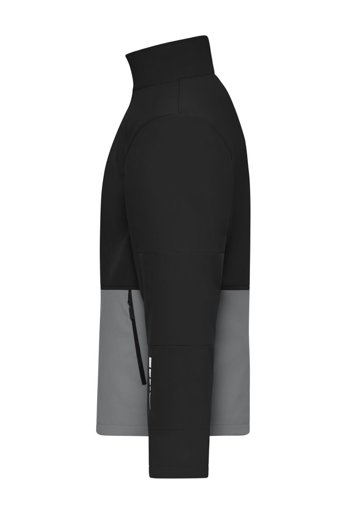 Elastic, durable softshell material with TPU membrane, woven outer fabric, fleece lining Windproof and water-repellent (8,000 mm water column) Breathable and water vapour permeable (2,000 g/m²/24h) Stand-up collar Full-length under-panel zip with chin guard Elasticated inner cuffs Extended back section 2 zipped side pockets 1 contrasting zip chest pocket 1 zipped inside pocket Drawstring for width adjustment at the hem Reflective elements (without protective function/no PPE) on the back and sleeves Zips: YKK 1/2 chest: 55 cm 1/2 bottom width: 54 cm front length from shoulder: 70 cm length back from shoulder: 74 cm sleeve length: 65 cm OEKO-TEX® Standard 100 (15.0.70467) Softshell Breathability Breathable-Permeable to water vapour Water column from 1.500 mm Water column from 2.000 mm Water column from 3.000 mm Water column from 5.000 mm Water column from 8.000 mm wind- and water-repellent stand-up collar Reflex YKK-Zipper