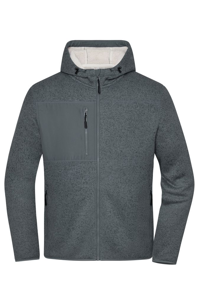 Soft, warm quality with a melange look Knitted look on the outside, fluffy sherpa fleece on the... more