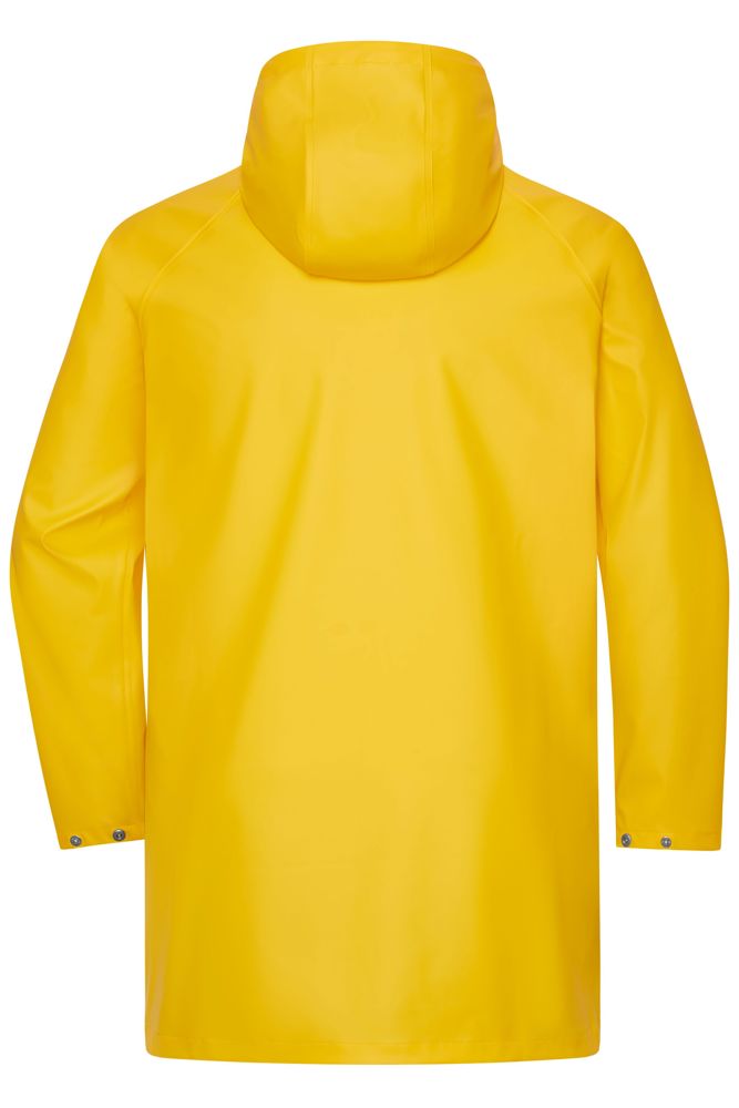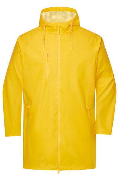 Windproof and waterproof elastic material (3,000 mm water column) Printed stripe on the inside of the material and contrasting details Seams are sealed and all zips are waterproof Adjustable hood with drawstring Extended back Underarm ventilation with eyelets Press studs for width adjustment on the sleeves Full-length under-panel 2-way zip with chin guard 2 side pockets and one breast pocket with zips Zips: YKK 1/2 chest: 51 cm 1/2 waist width: 50 cm 1/2 bottom width: 52 cm front length from shoulder: 90 cm length back from shoulder: 94 cm sleevelength raglan: 74,50 cm Water column from 1.500 mm Water column from 2.000 mm Water column from 3.000 mm Taped seams Waterproof Zipper 2-way zip fastener YKK-Zipper