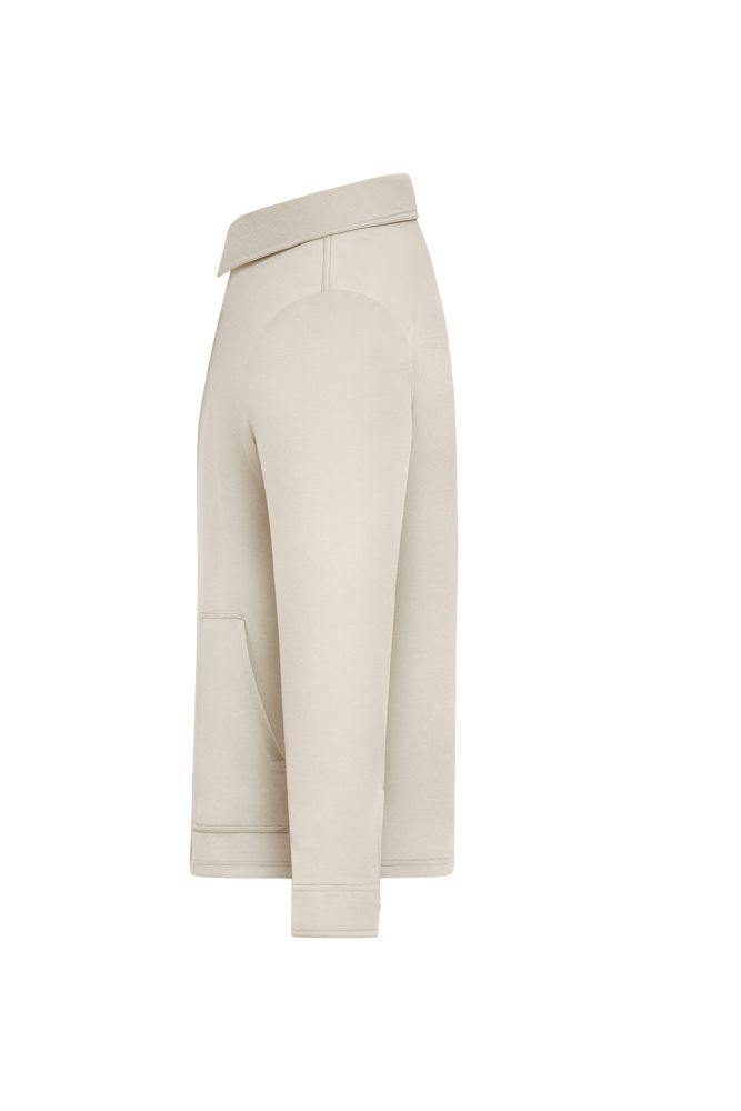 Elastic knit fabric made from a mix of organic cotton and recycled polyester Pre-formed collar Shoulder and back yoke Patch pockets Cuff closure on the sleeves 1/2 chest: 53 cm 1/2 bottom width: 53 cm length from shoulder: 70 cm sleeve length: 65 cm Organic Cotton OCS Standard blended GRS Standard