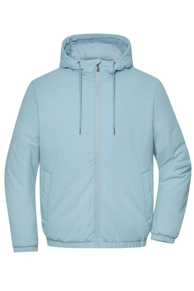 Comfortable to wear thanks to lightweight material and soft Sugenro padding (recycled) Water- and dirt repellent Attached hood with drawstring Elasticated waistband and cuffs 2 side pockets with press stud fastening 1 inner pocket with zip fastening Zip fastening at the back 1/2 chest: 58 cm length from shoulder: 69 cm sleeve length: 66 cm OEKO-TEX® Standard 100 (25.HDE.51239) padded GRS Standard Sugenro® GRS Insulation Hood