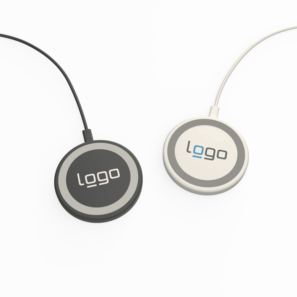 Its compact size and modern design make it a stylish addition to any desk. The top surface provides space for your logo or custom print.With a fast charging speed of 15 W, your device charges efficiently and quickly.