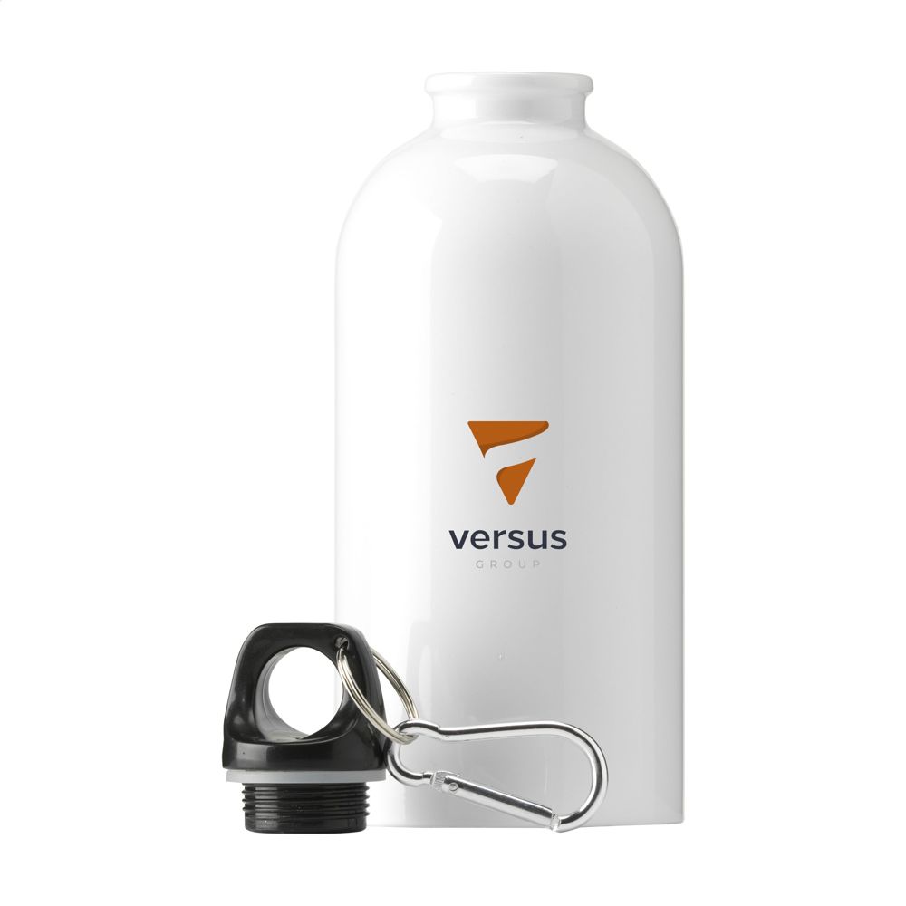 Sporty, single-walled water bottle made from recycled stainless steel. With high gloss finish, plastic screw top with keyring and metal carabiner. The carabiner is not to be used for climbing. Leak proof. Not dishwasher-safe. RCS-certified. Total recycled material: 77%. Capacity 500 ml. Stainless steel can be recycled many times whilst retaining the quality of the material. By using recycled stainless steel, fewer new raw materials are needed. This means less energy consumption and less use of water.
