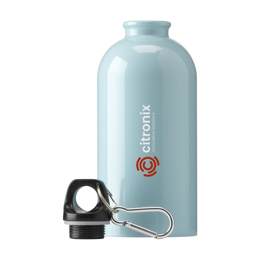 Sporty, single-walled water bottle made from recycled stainless steel. With high gloss finish, plastic screw top with keyring and metal carabiner. The carabiner is not to be used for climbing. Leak proof. Not dishwasher-safe. RCS-certified. Total recycled material: 77%. Capacity 500 ml. Stainless steel can be recycled many times whilst retaining the quality of the material. By using recycled stainless steel, fewer new raw materials are needed. This means less energy consumption and less use of water.