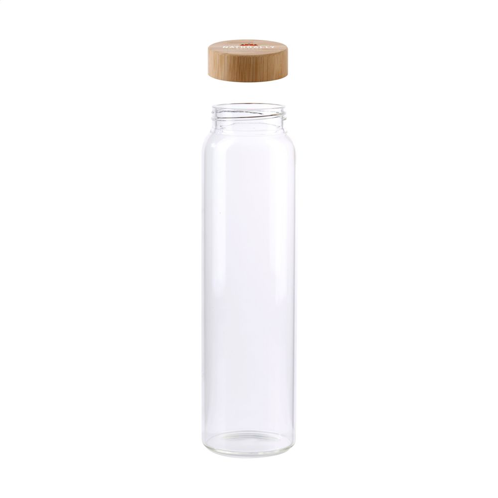 Slim, leak proof drinking bottle made of high-quality borosilicate glass with a bamboo screw cap. Suitable for hot and cold drinks. The elegant design also makes the stylish bottle suitable for use as a table bottle. The glass bottle is dishwasher-safe, with the exception of the screw cap. Washing by hand is recommended to preserve the imprint. Capacity 1,000 ml. Packed individually.