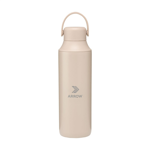 Double-walled thermos bottle made from recycled stainless steel. This leak proof bottle has a silicone carrying loop and 2 openings with a screw cap: a drinking opening and a generous opening for easy cleaning of the bottle or adding ice cubes. Fits most cup holders and is finished with a beautiful powder coating. Suitable for keeping hot or cold drinks at a consistent temperature. Not dishwasher-safe. RCS-certified. Total recycled material: 72%. Capacity 600 ml. Stainless steel can be recycled many times whilst retaining the quality of the material. By using recycled stainless steel, fewer new raw materials are needed. This means less energy consumption and less use of water. Packed individually.