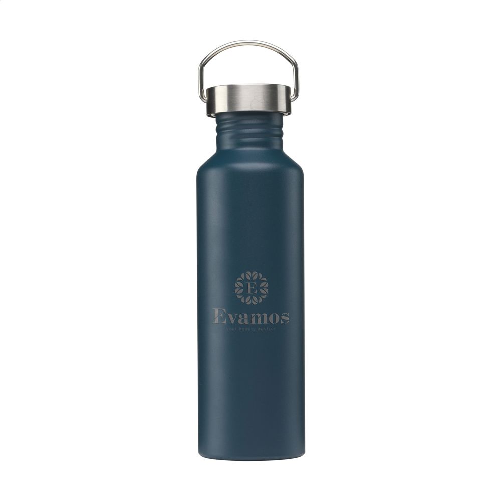 Single-walled, leak-proof water bottle with screw cap and carrying ring. Made from recycled stainless steel. Not dishwasher-safe. RCS-certified. Total recycled material: 75%. Capacity 800 ml. Stainless steel can be recycled many times whilst retaining the quality of the material. By using recycled stainless steel, fewer new raw materials are needed. This means less energy consumption and less use of water. A responsible choice. Packed individually.