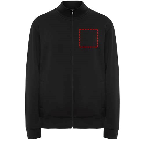 High collar sweater with matching zip. Matching inner collar with reinforced covered seams. 1x1 ribbed fabric in cuffs and waist. Removable label. The male model is 185 cm and is wearing size L, and the female model is 168 cm and is wearing size S.