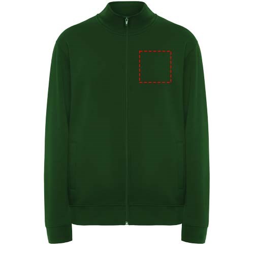 High collar sweater with matching zip. Matching inner collar with reinforced covered seams. 1x1 ribbed fabric in cuffs and waist. Removable label. The male model is 185 cm and is wearing size L, and the female model is 168 cm and is wearing size S.
