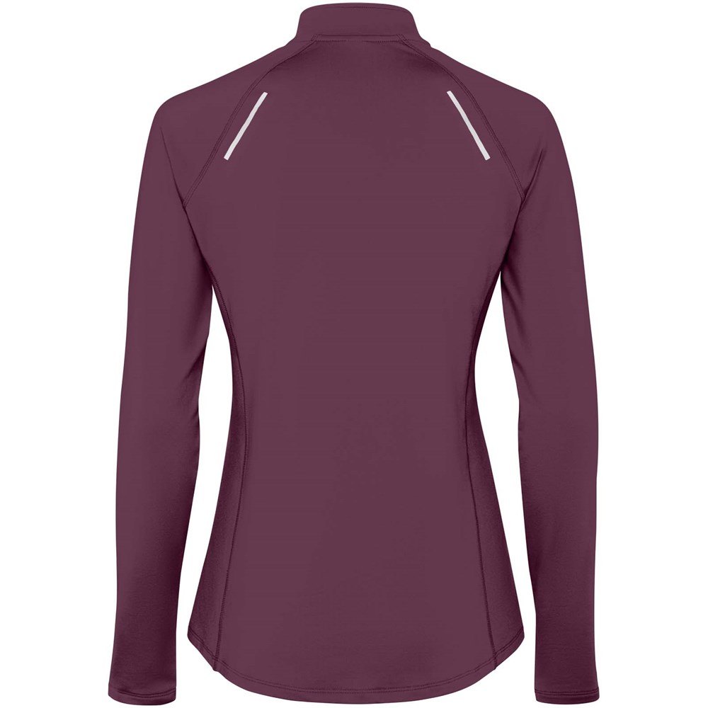 Long-sleeve technical raglan sweatshirt for women. Slim-fit. Collar with a half zip inverted design featuring reflective details. Reinforced seam covers. Cuffs with thumb openings. Reflective details on the back. Back hem slightly longer than the front. Warm brushed inner fabric.