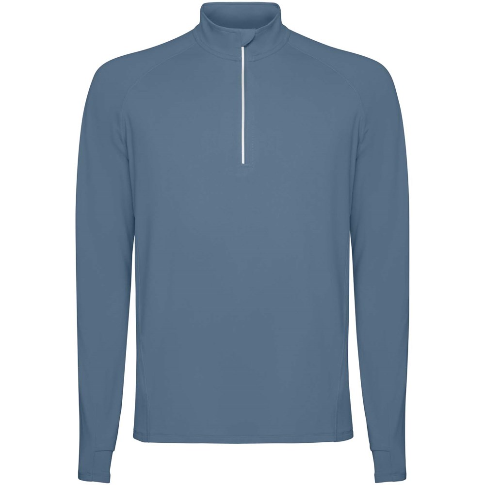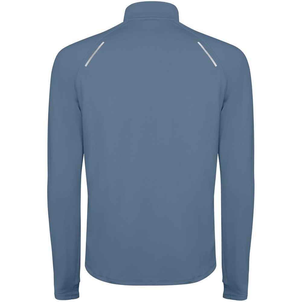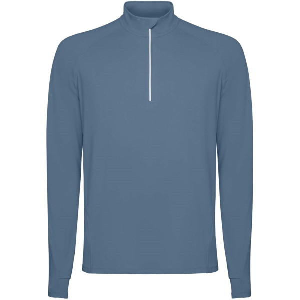 Long-sleeve technical raglan sweatshirt for men. Collar with a half zip inverted design featuring reflective details. Reinforced seam covers. Cuffs with thumb openings. Reflective details on the back. Back hem slightly longer than the front. Warm brushed inner fabric.