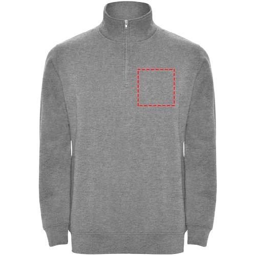 Sweatshirt with matching half zip and polo neck. Matching inner collar. Reinforced covered seams on inner collar. 1x1 ribbed cuffs and waist. The model is 185 cm and is wearing size M.