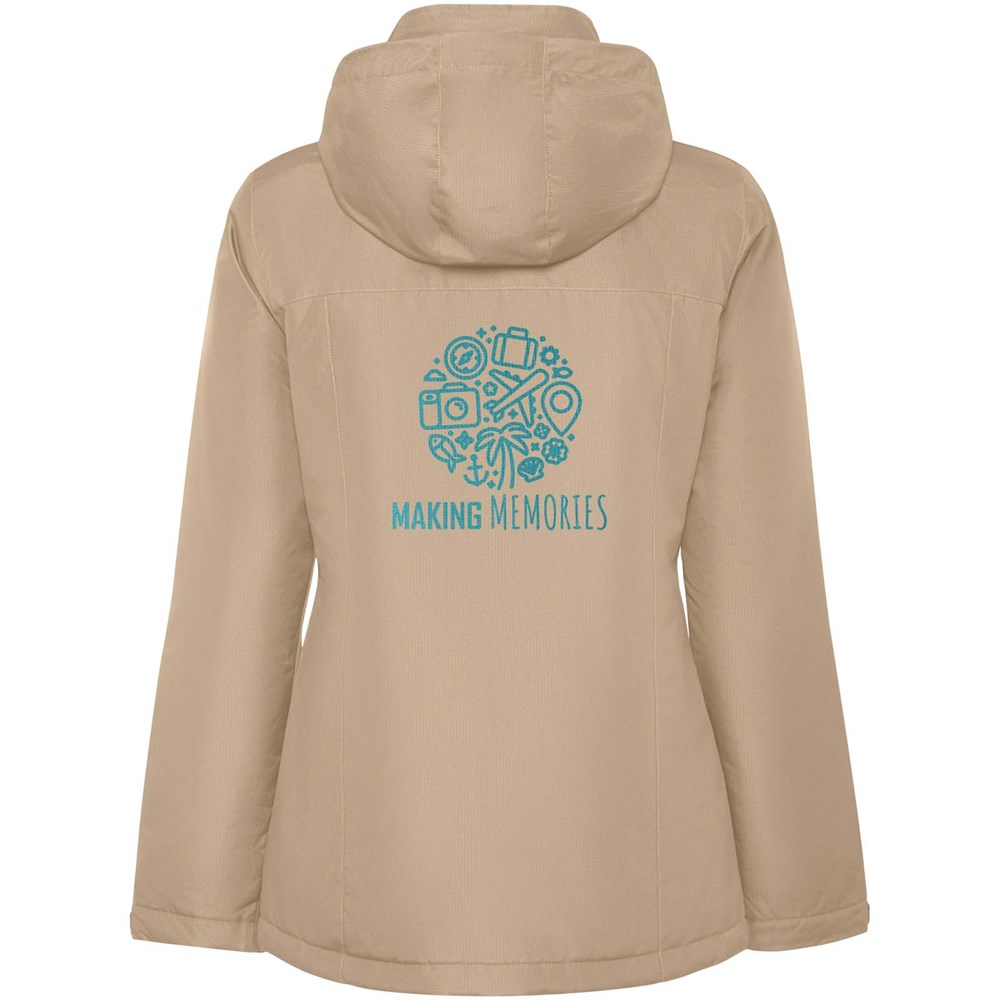 Waterproof padded parka jacket for women. Slim-fit. High collar with folded and removable hood with hook & loop closure. Matching central zipper with flap. Side pockets with zipper and fixed flap. Interior pocket with hook & loop closure. Adjustable cuffs with hook & loop belt loop. Interior access for reinforcements on the back and left chest.