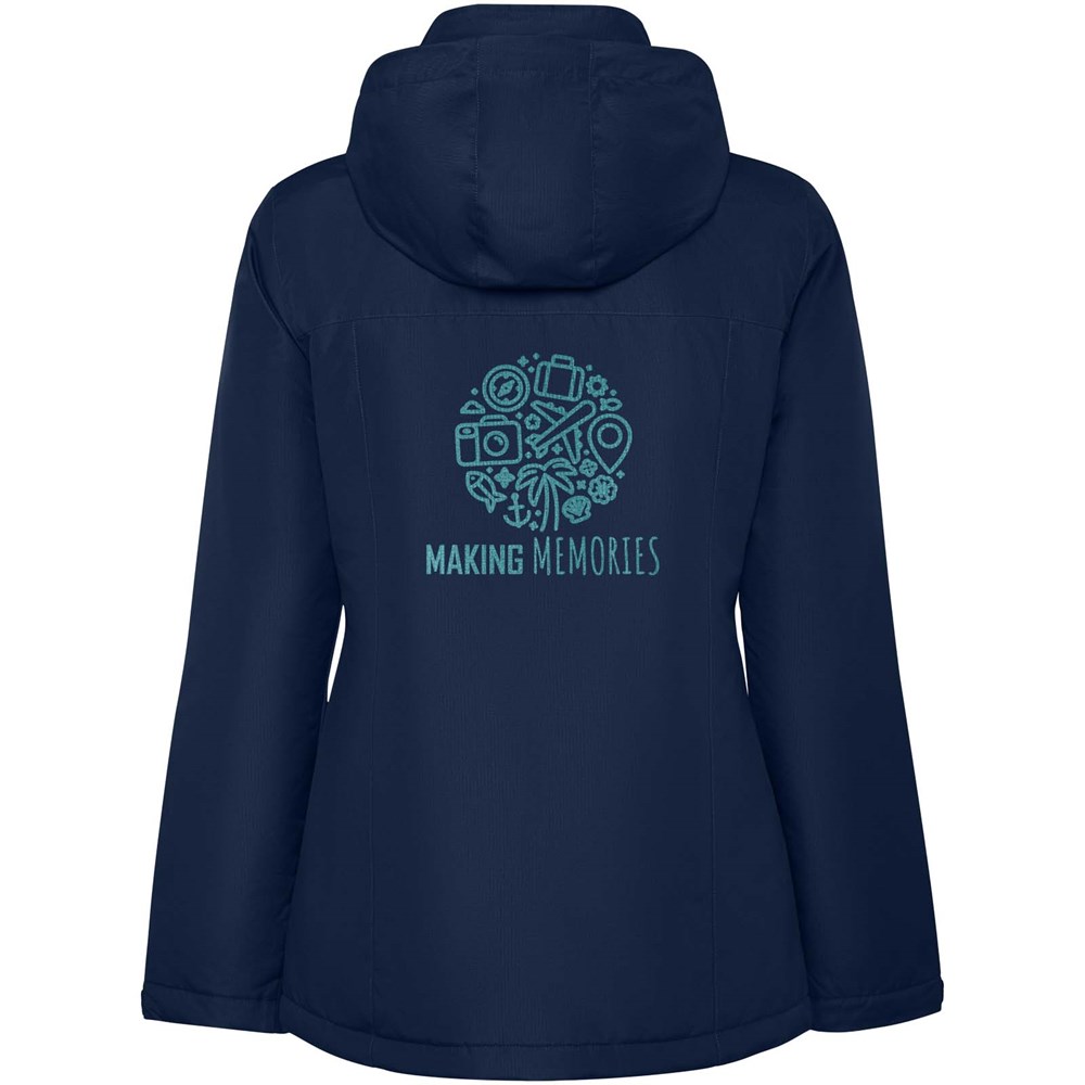 Waterproof padded parka jacket for women. Slim-fit. High collar with folded and removable hood with hook & loop closure. Matching central zipper with flap. Side pockets with zipper and fixed flap. Interior pocket with hook & loop closure. Adjustable cuffs with hook & loop belt loop. Interior access for reinforcements on the back and left chest.
