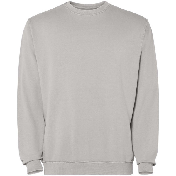 Unisex sweater with an acid-wash finish. 2x1 ribbed collar, cuffs and hem in tone. Reinforced seams at cuffs, hem, waistband and armholes. Tone-on-tone cover stitch at the neck.