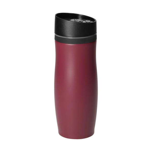 Enjoy the taste of freshly brewed coffee/tea for hours, without burning your fingers! The double-walled, insulated mug in stainless steel is the perfect companion for all coffee and tea lovers. The cleverly curved shape of the mug, which can be opened and closed single-handedly, make it a real must-have item. Thanks to the screw-on top with silicon ring, the contents will always remain reliably inside. Capacity: 350 ml.