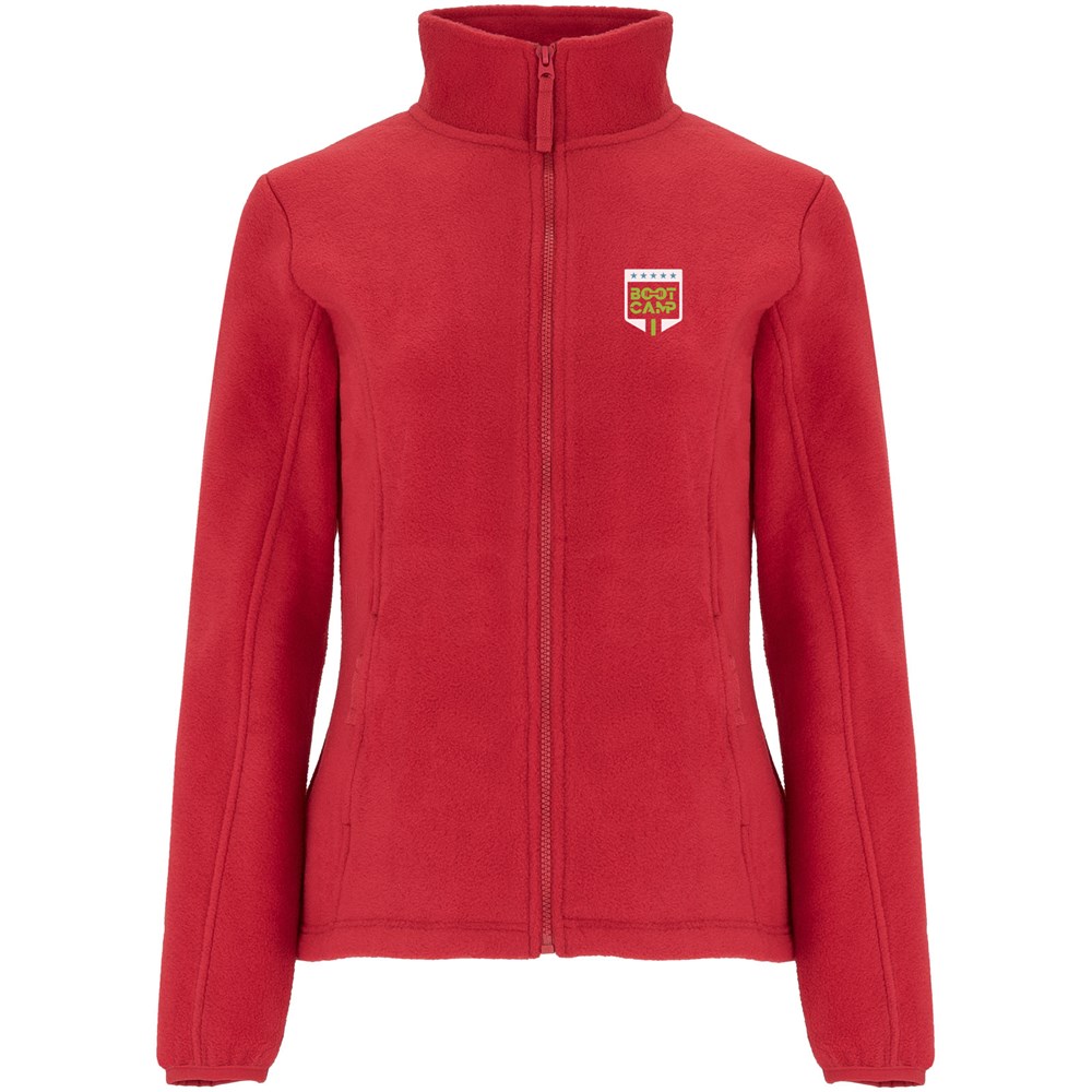 Fleece jacket with high lined collar and matching reinforced covered seams. Injected zip with... more