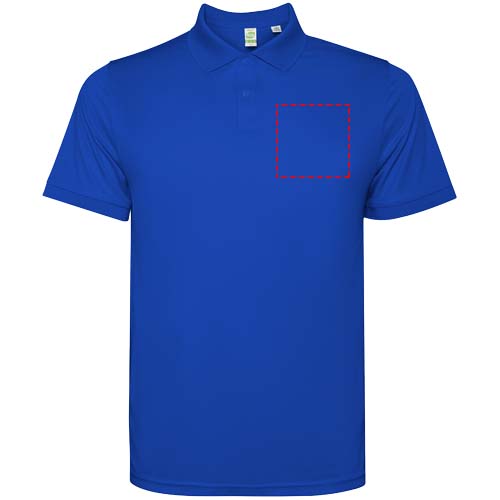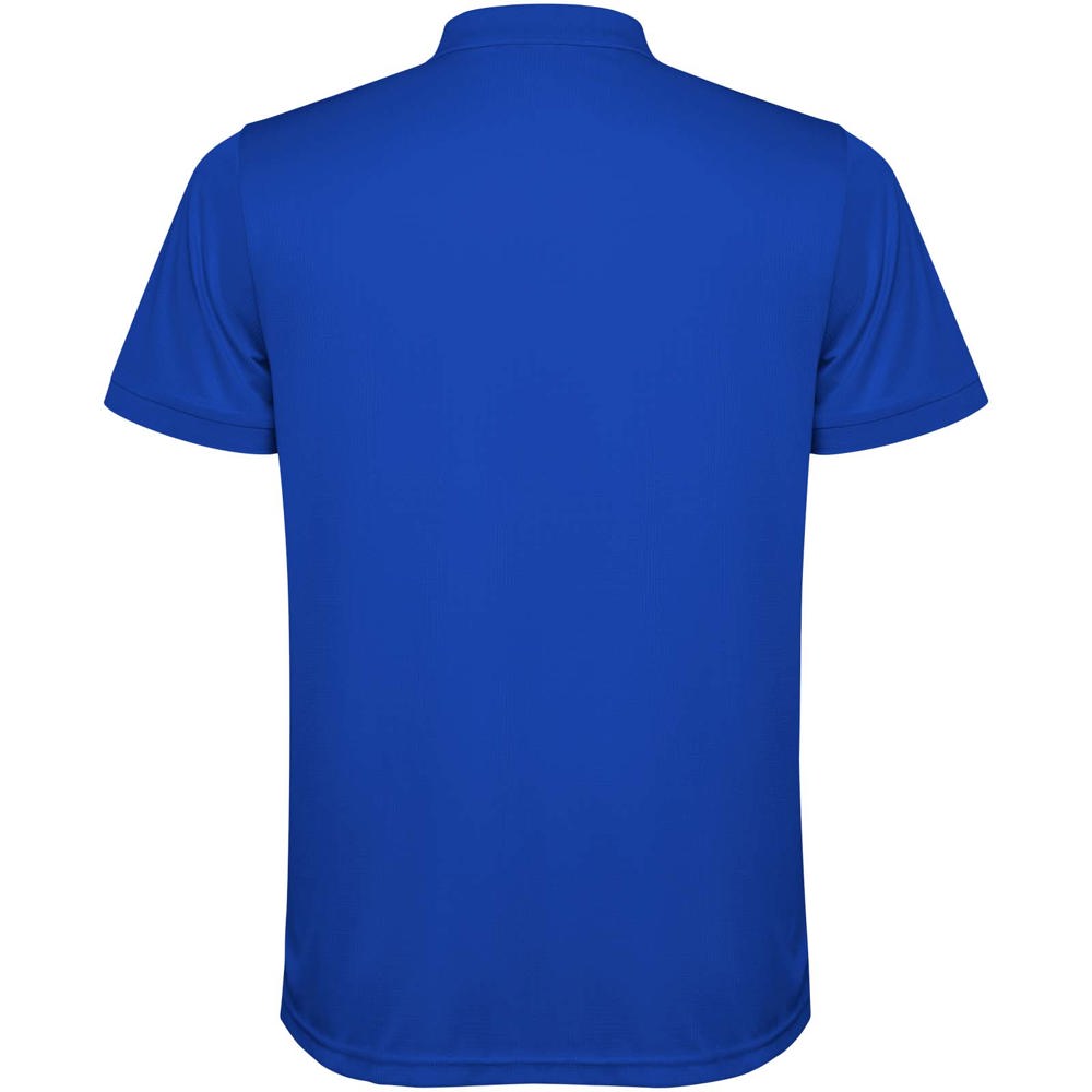 Short-sleeve polo shirt for men. Reinforced covered seams in interior collar. 1x1 ribbed cuffs and collar. Side seams. 3-button placket and side slits.