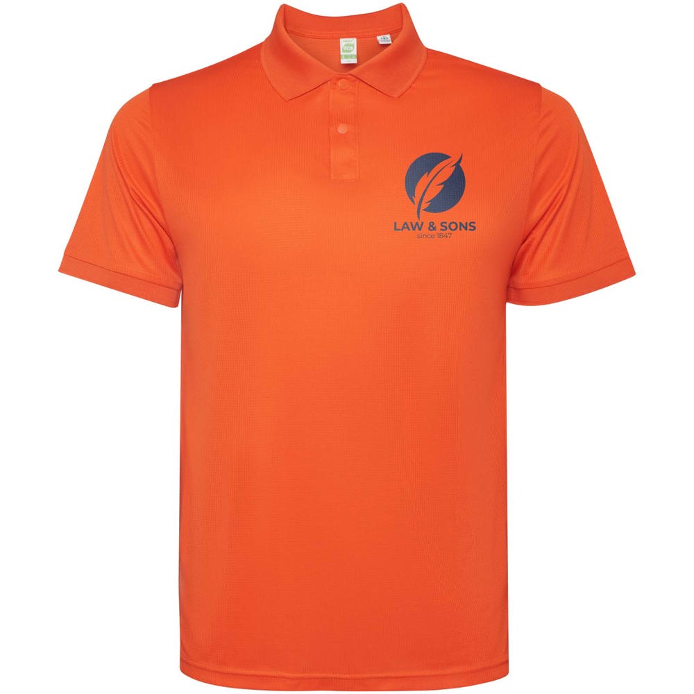 Short-sleeve polo shirt for men. Reinforced covered seams in interior collar. 1x1 ribbed cuffs and collar. Side seams. 3-button placket and side slits.
