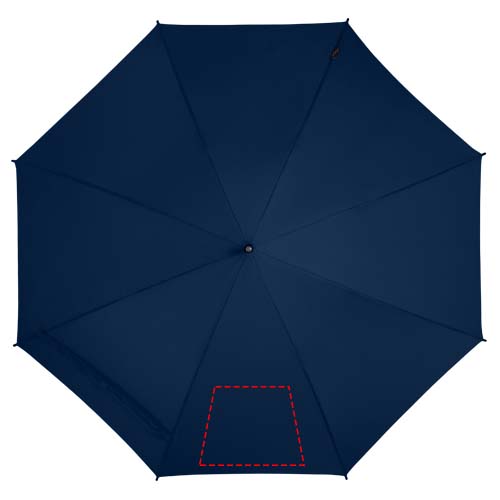 23” automatic opening umbrella with a recycled PET pongee polyester canopy. It has a sturdy metal shaft, fiber glass frame, and a comfortable EVA handle with colour matching end. Large print area on each of the panels.