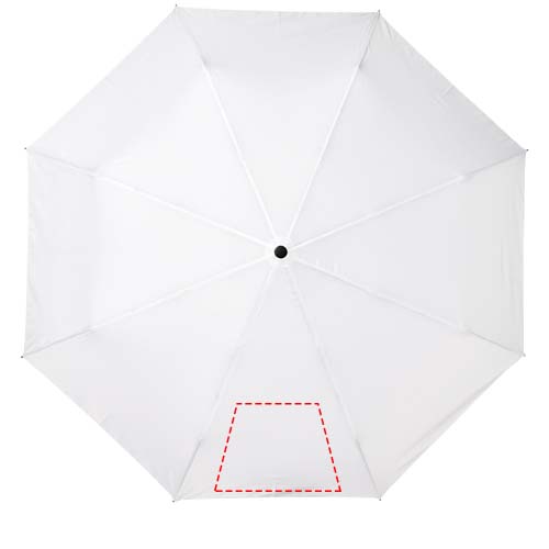 Automatic opening umbrella with a recycled PET pongee polyester canopy. Sturdy metal shaft, a high quality frame with fibreglass ribs offering flexibility in windy conditions. Together with the wooden handle, tips, and the recycled PET pongee polyester canopy it offers a more sustainable choice. Available in a wide variety of contemporary colours with an large decoration area on each of the panels.