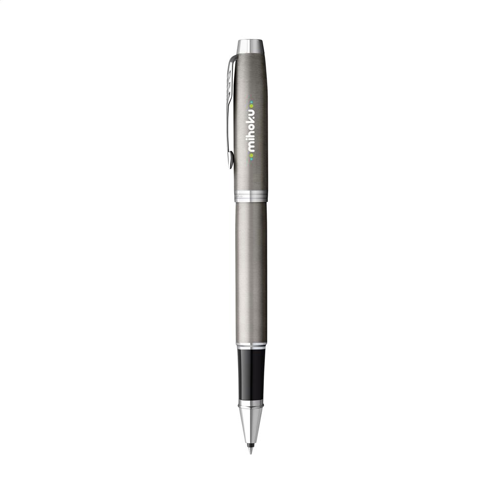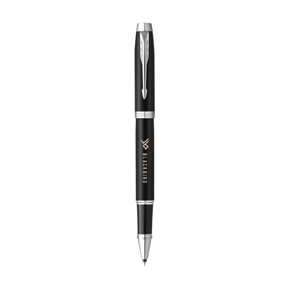 Black ink rollerball pen by Parker. With a sleek, tapered shape and exclusive design. The brass barrel, combined with a black plastic front section and high-gloss stainless steel accents, creates an elegant appearance. With removable cap and iconic arrow clip. The rollerball tip and fast-drying blue gel refill ensure a smooth writing experience. Ideal as a personal gift and perfect for daily use. Supplied in a Parker gift box.