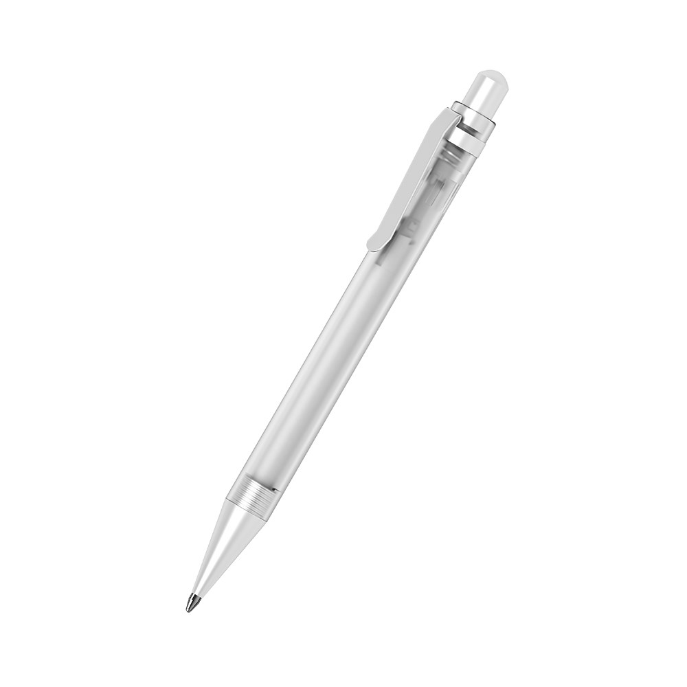 The Icy ice MMs is a Retractable ballpoint pen. Material and surface: Tip: brass satin chrome. Barrel: plastic (M-ABS) frosted. Clip: spring steel satin chrome. Push button: brass satin chrome. Standard colours: Barrel: available in 4 colours. Special colours: from 10,000 pcs., without PMS surcharge from 25,000 pcs.. Refill: Icefill (2,000 m), blue, Refill Optional: Silktech L.