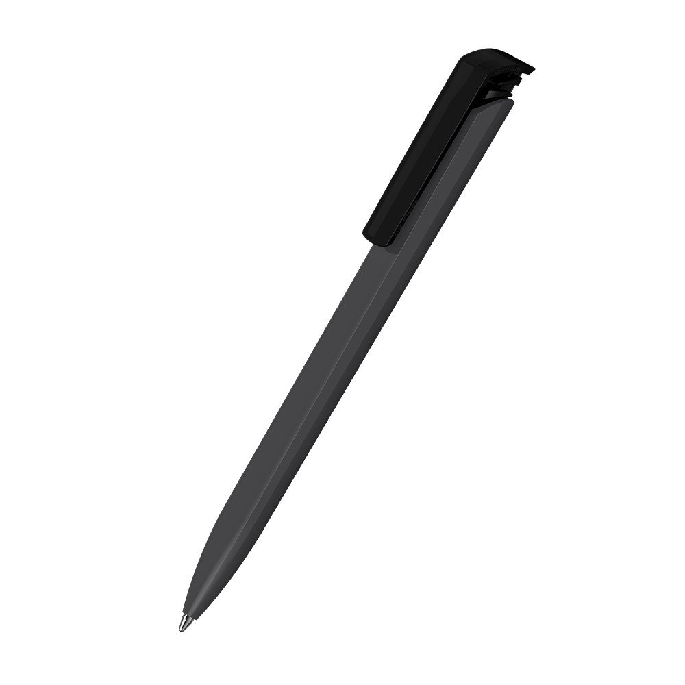 The Trias high gloss/transparent is a Retractable ballpoint pen. Material and surface: Barrel: plastic (ABS) high gloss. Push button clip: plastic (M-ABS) transparent. Refill tubes: Recycled polypropylene (rPP). Standard colours: Barrel: can be combined in 14 colours. Push button clip: can be combined in 12 colours. Special colours: from 5,000 pcs., without PMS surcharge from 25,000 pcs.. Refill: Silktech L (3,000 m), blue or black, Refill Optional: