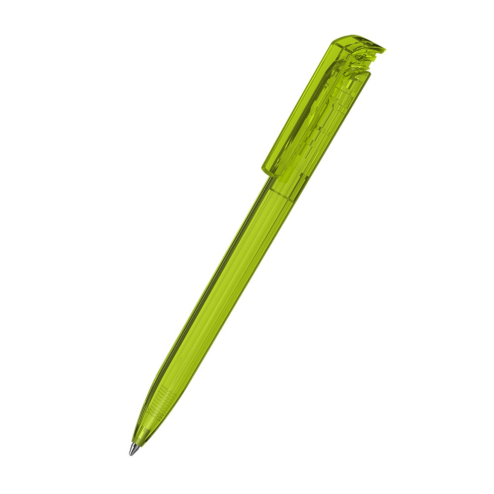 The Trias transparent is a Retractable ballpoint pen. Material and surface: Barrel and push button clip: plastic (M-ABS) transparent. Refill tubes: Recycled polypropylene (rPP). Standard colours: Barrel and push button clip: can be combined in 12 colours. Special colours: from 3,000 pcs., without PMS surcharge from 25,000 pcs.. Refill: Silktech L (3,000 m), blue or black, Refill Optional:
