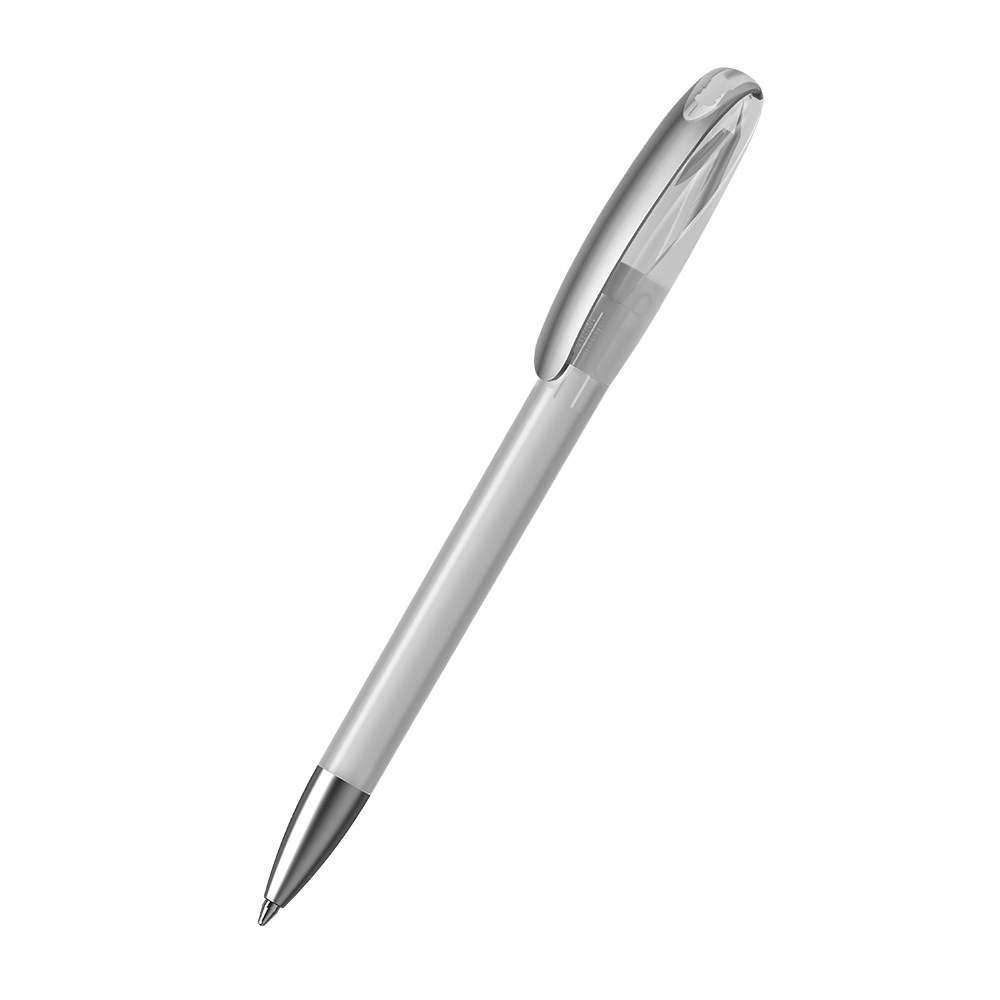 The Boa ice/transparent MMs is a Twist action ballpoint pen. Material and surface: Tip: brass satin chrome. Barrel and upper barrel: plastic (M-ABS) frosted, Upper barrel: mix of matt and shiny surfaces. Clip: spring steel satin chrome. Refill tubes: Recycled polypropylene (rPP). Standard colours: Barrel and upper barrel: can be combined in 12 colours. Special colours: from 5,000 pcs., without PMS surcharge from 25,000 pcs.. Refill: Silktech L (3,000 m), blue or black, Refill Optional: Silktech XL, Multifill P, Multi-Gel.