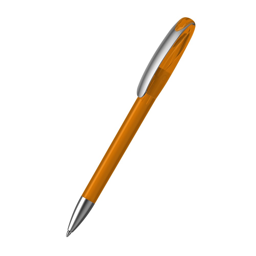 The Boa ice/transparent MMs is a Twist action ballpoint pen. Material and surface: Tip: brass satin chrome. Barrel and upper barrel: plastic (M-ABS) frosted, Upper barrel: mix of matt and shiny surfaces. Clip: spring steel satin chrome. Refill tubes: Recycled polypropylene (rPP). Standard colours: Barrel and upper barrel: can be combined in 12 colours. Special colours: from 5,000 pcs., without PMS surcharge from 25,000 pcs.. Refill: Silktech L (3,000 m), blue or black, Refill Optional: Silktech XL, Multifill P, Multi-Gel.