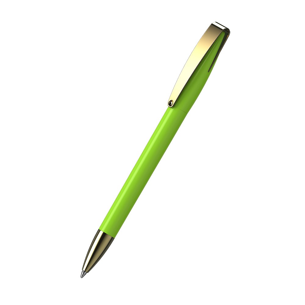 The Cobra high gloss MMg is a Twist action ballpoint pen. Material and surface: Tip: brass golden coloured. Barrel and upper barrel: plastic (ABS) high gloss. Clip: spring steel golden plated Refill tubes: Recycled polypropylene (rPP). Standard colours: Barrel and upper barrel: can be combined in 14 colours. Special colours: from 5,000 pcs., without PMS surcharge from 25,000 pcs.. Refill: Silktech L (3,000 m), blue or black, Refill Optional: Silktech XL, Multifill P, Multi-Gel.
