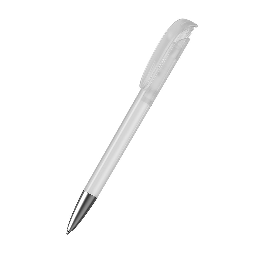 The Jona ice Ms is a Retractable ballpoint pen. Material and surface: Tip: brass satin chrome. Barrel and push button clip: plastic (M-ABS) frosted. Refill tubes: Recycled polypropylene (rPP). Standard colours: Barrel and push button clip: can be combined in 12 colours. Special colours: from 5,000 pcs., without PMS surcharge from 25,000 pcs.. Refill: Silktech L (3,000 m), blue or black, Refill Optional: Silktech XL, Multifill P, Multi-Gel.
