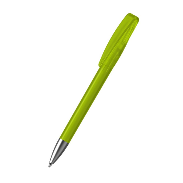 The Cobra ice Ms is a Twist action ballpoint pen. Material and surface: Tip: brass satin chrome. Barrel, upper barrel and clip: plastic (M-ABS) frosted. Refill tubes: Recycled polypropylene (rPP). Standard colours: Barrel, upper barrel and clip: can be combined in 12 colours. Special colours: from 5,000 pcs., without PMS surcharge from 25,000 pcs.. Refill: Silktech L (3,000 m), blue or black, Refill Optional: Silktech XL, Multifill P, Multi-Gel.