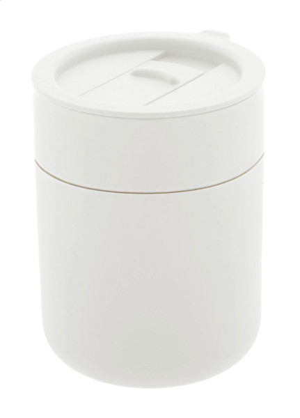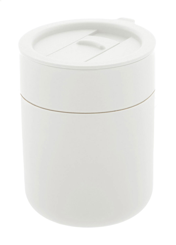 Silicone covered ceramic travel cup with PP plastic drinking lid. 300 ml. more