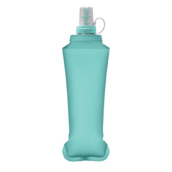 Foldable TPU water bottle with bite valve. Lightweight and portable design, ideal for outdoor use. Leak-free. Capacity 500 ml.