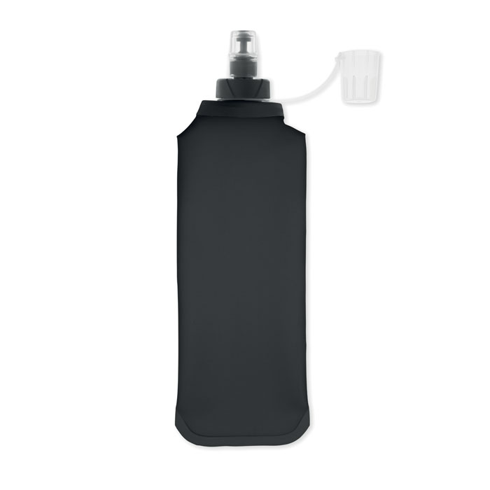 Foldable TPU water bottle with bite valve. Lightweight and portable design, ideal for outdoor use. Leak-free. Capacity 500 ml.