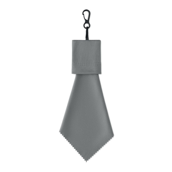 RPET cleaning cloth with self material pouch with PP plastic hanging hook.