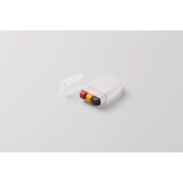 Body paint stick in national flag colours with wax paint in PP case and PS lid.