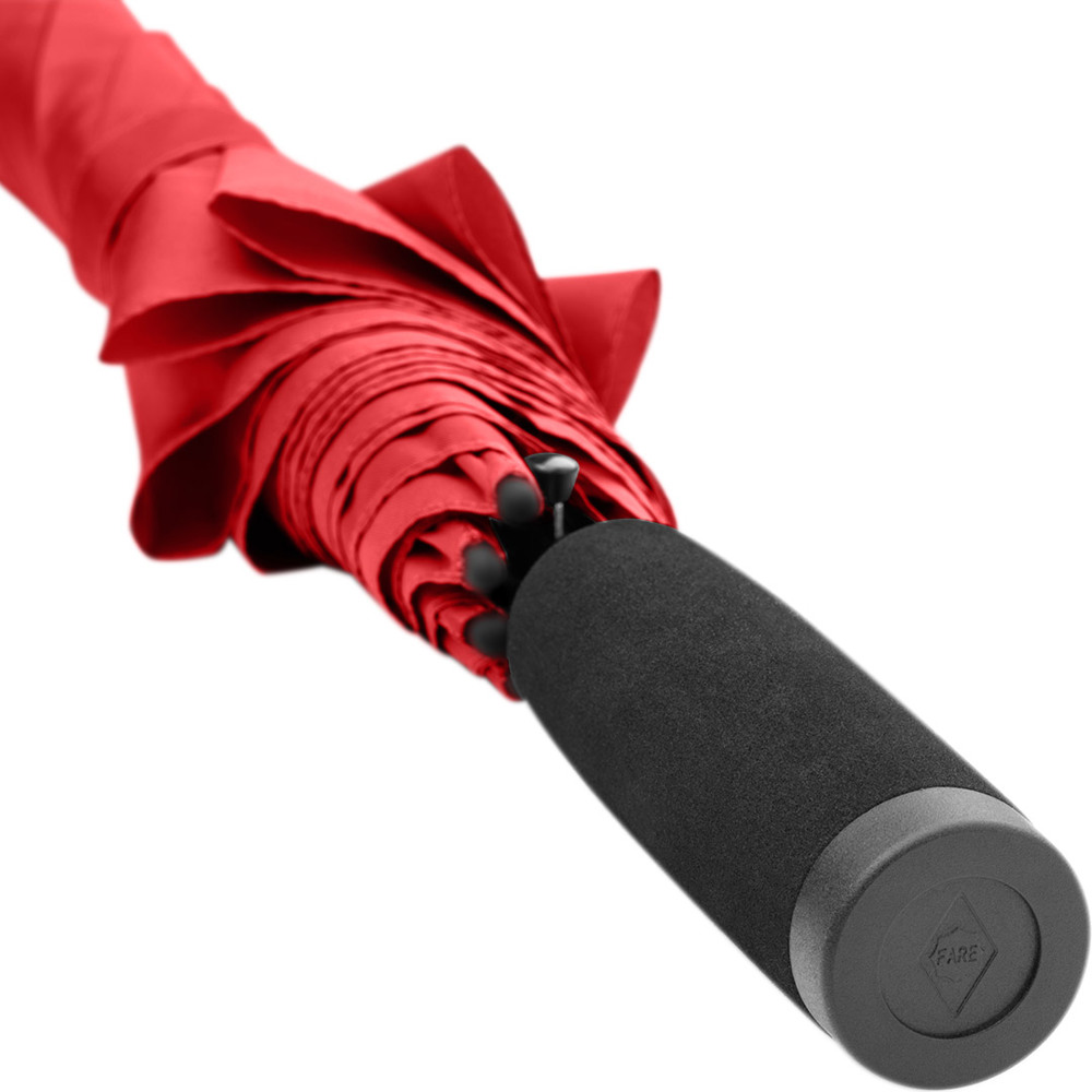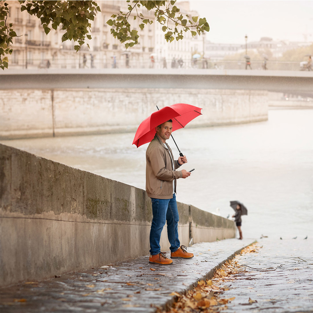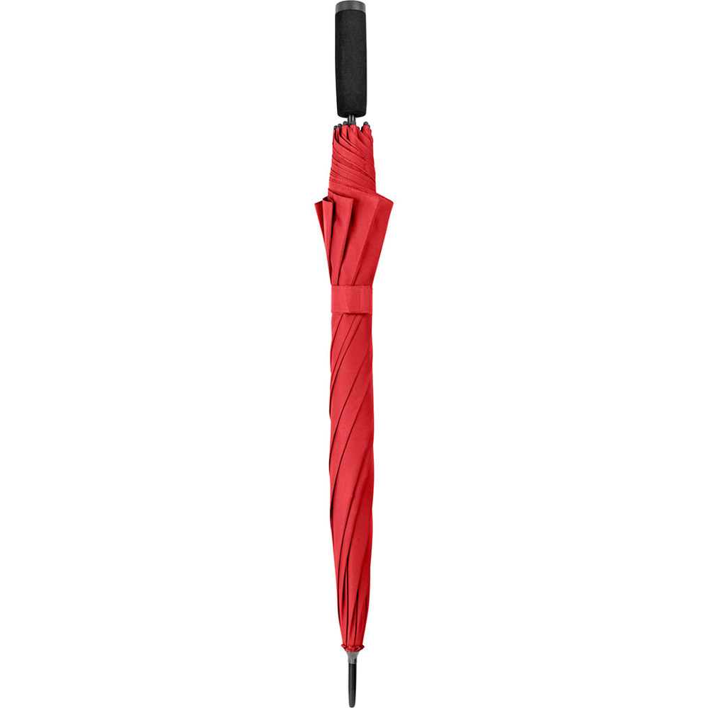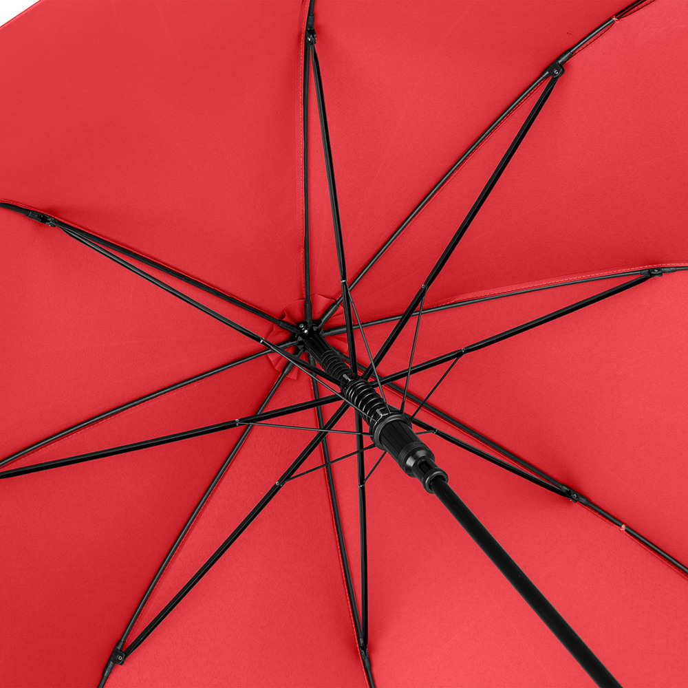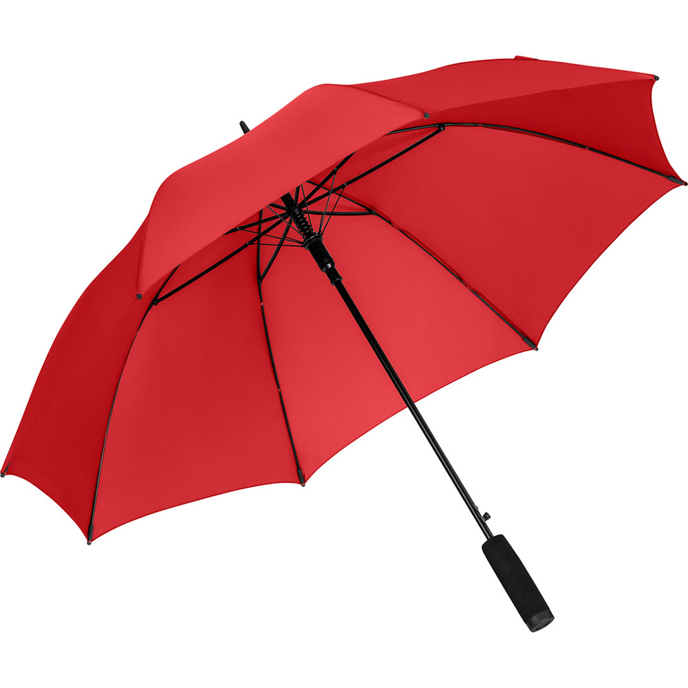 Automatic regular umbrella with excellent value for money and Windproof system Convenient automatic function for quick opening, Windproof system for higher frame flexibility and stability in windy conditions, flexible fibreglass ribs, higher corrosion protection thanks to black galvanisation of the steel shaft, comfortable soft handle with promotional labelling option