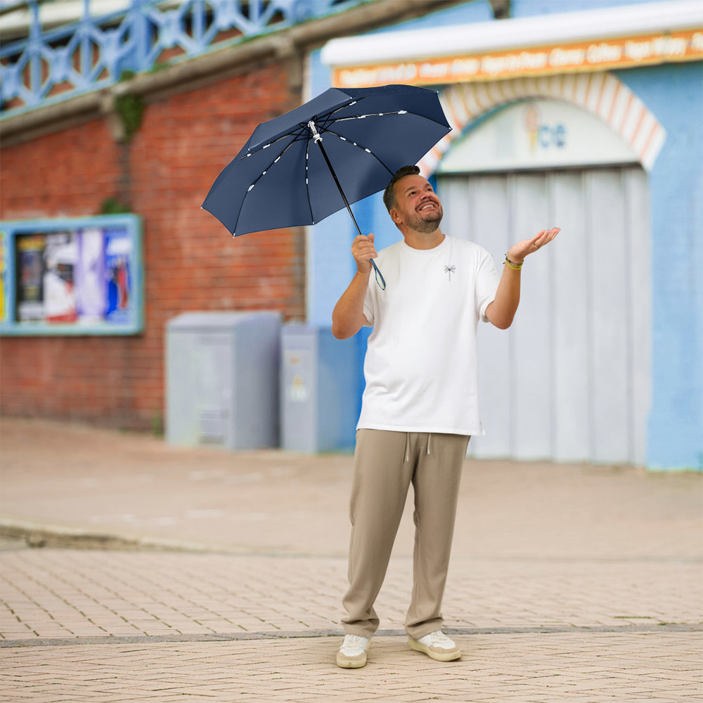 Stylish automatic open/close pocket umbrella with white design elements Convenient automatic... more