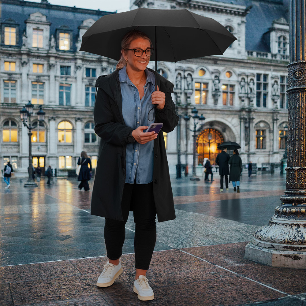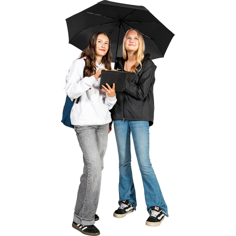 Compact manual opening pocket umbrella with excellent value for money and Windproof PLUS system Easy to use thanks to safety runner, high-quality Windproof PLUS system for maximum frame flexibility in strong gusts of wind, soft-feel handle with elastic carrying strap and promotional labelling option