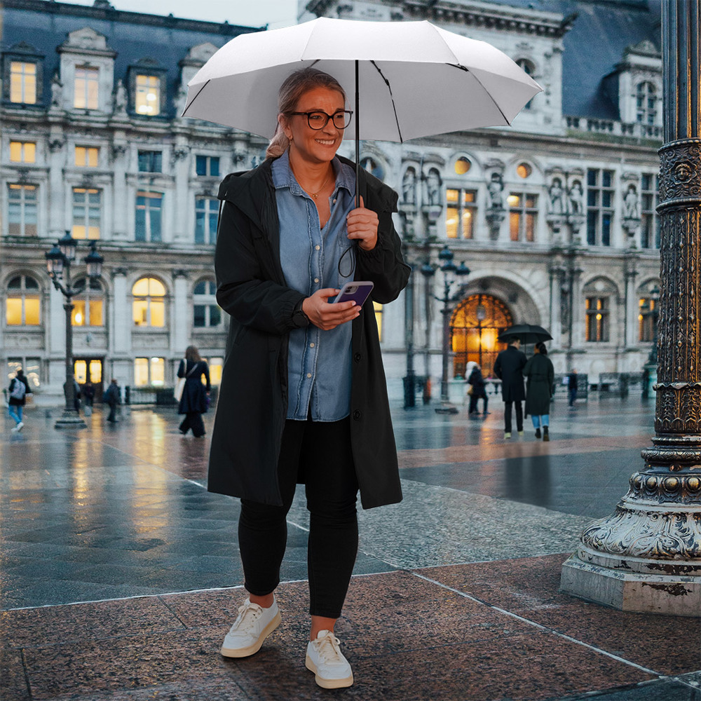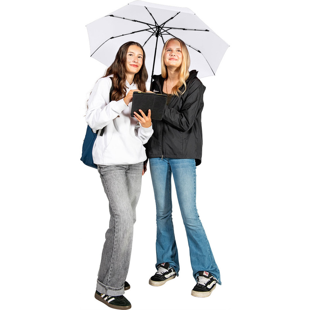 Compact manual opening pocket umbrella with excellent value for money and Windproof PLUS system Easy to use thanks to safety runner, high-quality Windproof PLUS system for maximum frame flexibility in strong gusts of wind, soft-feel handle with elastic carrying strap and promotional labelling option