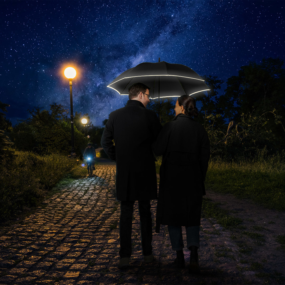 Smart medium-sized regular umbrella with fashionable reflective piping Convenient automatic... more